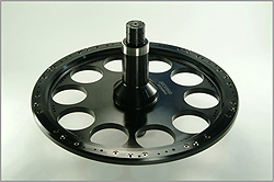 The GE LMS-100™ is the first inter-cooled gas turbine system developed especially for power generation. The Power Turbine is 83" (2108mm) in diameter and weighs in excess of 5000 lbs. (2250 kg). Our balancing tooling consists of modules for the static and dynamic balancing along with their associated lifting and storage equipment.